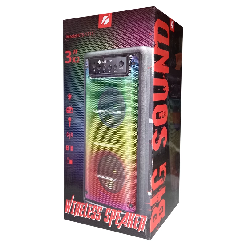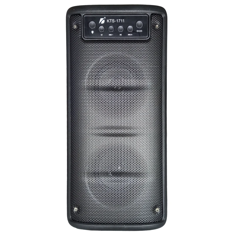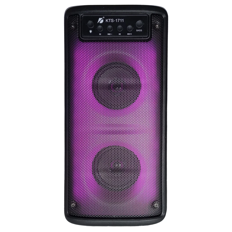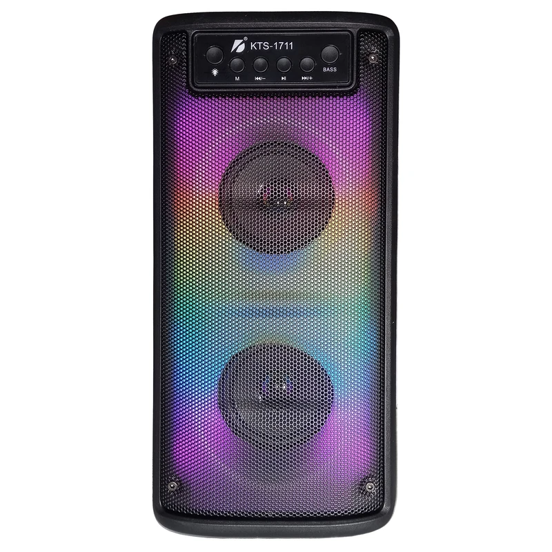 یه اسپیکر قابل حمل با طراحی جذاب و امکانات کامل ، یکی از گزینههای محبوب بازار اسپیکر بلوتوثی قابل حمل مدل KTS-1711 است. این دستگاه با دو بلندگوی ۳ اینچی و توان خروجی ۵ وات، صدایی واضح و پرقدرت ارائه میده که برای استفاده در خانه، فضای باز یا مهمانیها کاملاً مناسبه. نورپردازی LED تمامپنل جلوهای مدرن به ظاهر آن بخشیده و تجربه شنیداری را هیجانانگیزتر میکنه. اتصال از طریق بلوتوث نسخه ۵، پورت USB، شیار کارت حافظه و ورودی AUX امکان پخش موسیقی از منابع مختلف را فراهم میسازه. همچنین وجود ورودی میکروفون، این اسپیکر را برای سخنرانی یا اجرای زنده کاربردیتر کرده. باتری داخلی با ظرفیت ۱۵۰۰ میلیآمپر تا ۶ ساعت شارژدهی داره و قابلیت TWS امکان اتصال همزمان دو اسپیکر را فراهم میکنه. با وزن ۱.۲ کیلوگرم و ابعاد جمعوجور، این مدل انتخابی مناسب برای حمل آسان و استفاده روزمره اس.